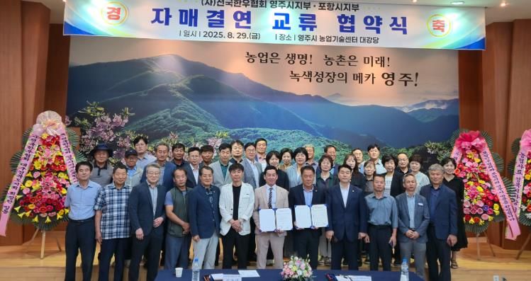 내고향뉴스 고광만 기자 | (사)전국한우협회 영주시지부와 포항시지부는 8월 29일 영주시 농업기술센터에서 자매결연 협약을 맺었다.