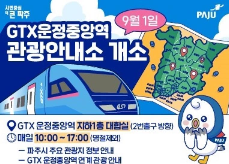 내고향뉴스 관리자 기자 | 파주시는 9월 1일 지티엑스(GTX) 운정중앙역에 신규 관광안내소를 개소하고 본격적인 운영에 들어갔다고 밝혔다.
