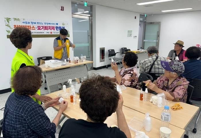 내고향뉴스 관리자 기자 | 의정부시 신곡1동주민센터는 8월 28일 신곡1동 지역사회보장협의체가 관내 저소득 취약계층 노인과 1인 중장년층 50명을 대상으로 ‘천연젤파스 및 모기퇴치제 만들기 체험 활동’을 진행했다고 밝혔다.
