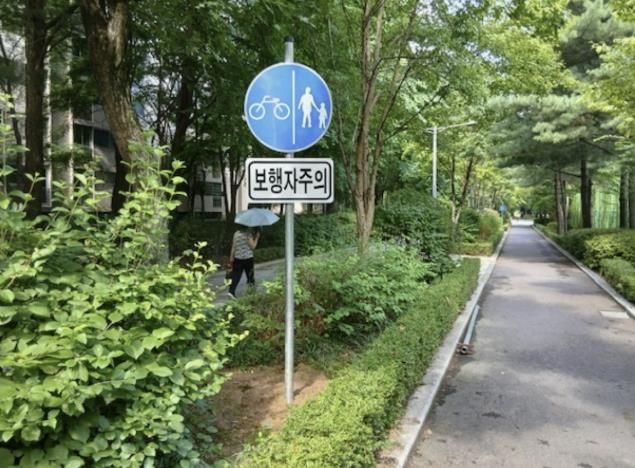 이를 위해 ▲보행자 주의 문구와 픽토그램 바닥 표시 ▲학교 앞 멈춤 표지판 설치 ▲자전거도로 양측 겸용도로 표지판 설치 등 세 가지 안전시설물을 집중 배치해, 자전거와 보행자가 위험을 사전에 인지하고 속도를 자연스럽게 줄일 수 있도록 했다.