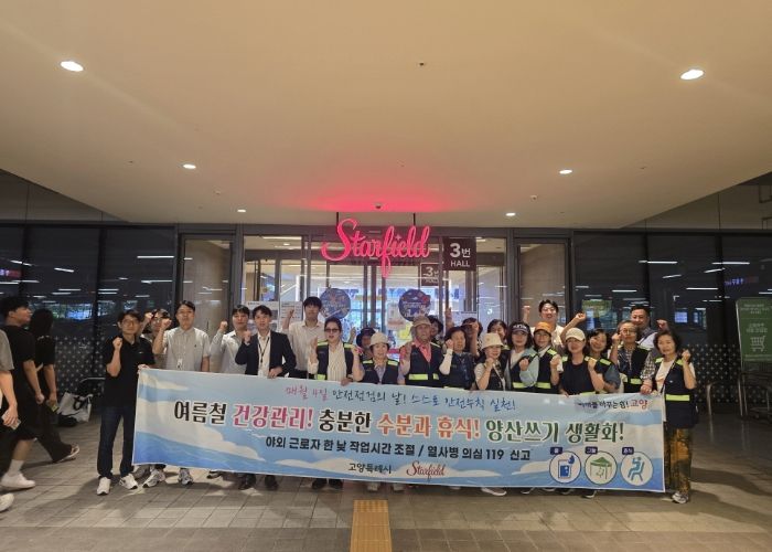 이번 캠페인은 고양시와 안전보안관, 스타필드 고양 직원 등 30여 명이 함께 참여한 가운데, 폭염으로 인한 시민 건강 피해를 최소화하고 예방 수칙을 홍보하기 위해 마련됐다.