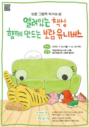 전시와 연계한 작가 도슨트 및 체험 프로그램도 운영할 예정이다. 작가와의 만남 시간에는 그림책을 제작하게 된 계기와 함께 작가의 그림책 세계관을 알아볼 수 있으며, 독후활동 프로그램도 준비돼 있다.