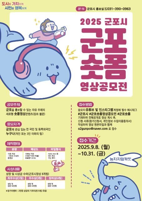 군포시 관계자는 “짧고 강렬한 숏폼 영상은 다양한 세대가 함께 공감할 수 있는 효과적인 소통 수단”이라며 “시민이 직접 참여해 군포의 매력을 자유롭게 담아낼 수 있는 이번 공모전에 많은 관심과 참여를 바란다”고 말했다.
