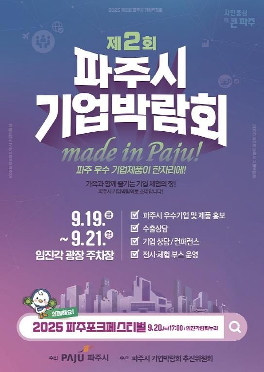 내고향뉴스 관리자 기자 | 파주시는 오는 9월 19일부터 21일까지 임진각 광장에서 열리는 ‘2025 제2회 파주시 기업박람회 ’메이드 인 파주(MADE IN PAJU!)’의 개최를 앞두고 막바지 준비에 박차를 가하고 있다.