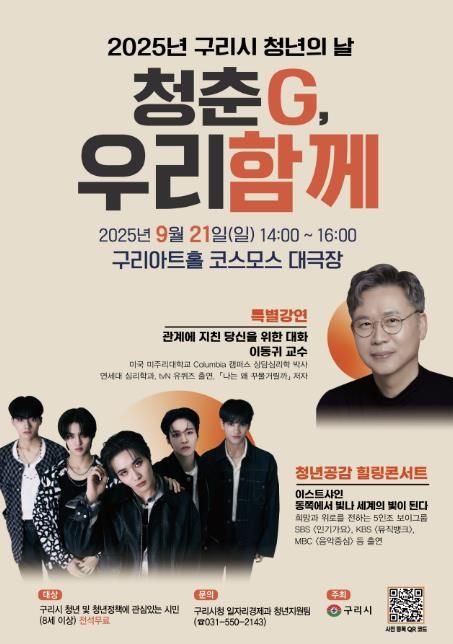 내고향뉴스 채필재 기자 | 구리시는 오는 9월 21일 오후 2시 구리아트홀 코스모스 대극장에서 ‘2025 구리시 청년의 날- 청춘G, 우리 함께’ 행사를 개최한다.