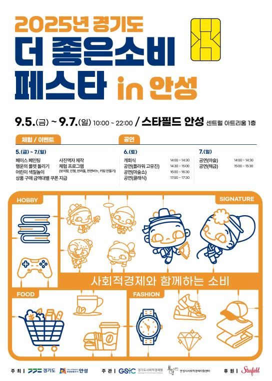 내고향뉴스 고광만 기자 | 안성시가 오는 9월 5일부터 9월 7일까지 3일간 오전 10시부터 오후 10시까지 스타필드 안성 센트럴 아트리움 1층에서 ‘2025 안성시 더 좋은소비 페스타’를 개최한다.