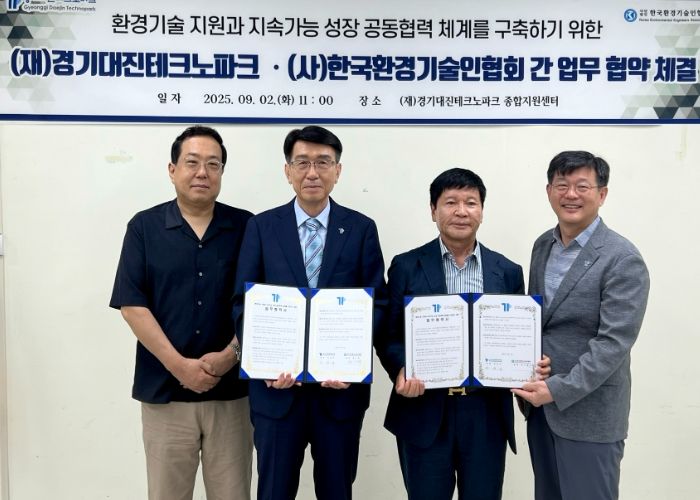 내고향뉴스 관리자 기자 | (재)경기대진테크노파크와 (사)한국환경기술인협회는 9월 2일 (재)경기대진테크노파크에서 환경기술 지원과 지속가능 성장 공동협력 체계를 구축하기 위한 업무협약을 체결했다.