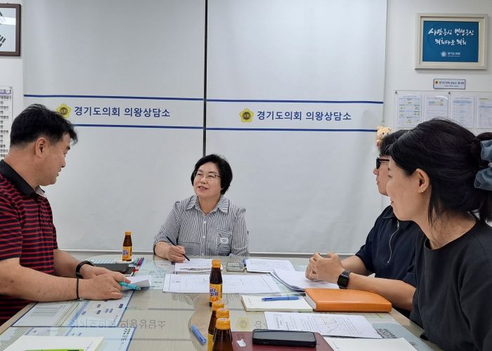 내고향뉴스 고광만 기자 | 경기도의회 도시환경위원회 김옥순 의원(더불어민주당, 비례)은 1일 경기도의회 의왕상담소에서 의왕 시청 지역 경제 위생과장 및 관계자들과 ‘의왕 도깨비시장 아케이드 설치 간담회’를 개최했다.