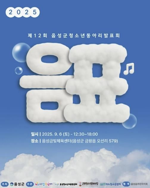 내고향뉴스 고광만 기자 | 음성군은 관내 청소년들에게 문화 표현의 기회를 제공하고 건전한 청소년 여가 활동 문화를 조성하기 위해 이달 6일 오후 12시 30분에 음성금빛체육센터에서 2025년 청소년동아리 발표회 ‘음표’를 개최한다고 밝혔다.