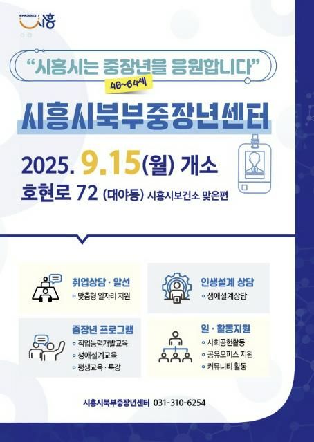 내고향뉴스 관리자 기자 | 시흥시는 중장년층 취업 지원과 사회참여 확대를 위해 시흥시북부중장년센터를 오는 9월 15일부터 임시 운영한다. 이번 운영은 내년 상반기 중 공식 개청식 전까지 진행되며 정식 운영과 동일하게 서비스를 제공한다.