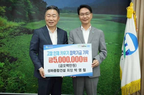 3일 성하종합건설에서 500만원, 부송건설에서 300만원의 장학금을 전달하며 고창군 학생들의 도전과 성장을 격려했다.