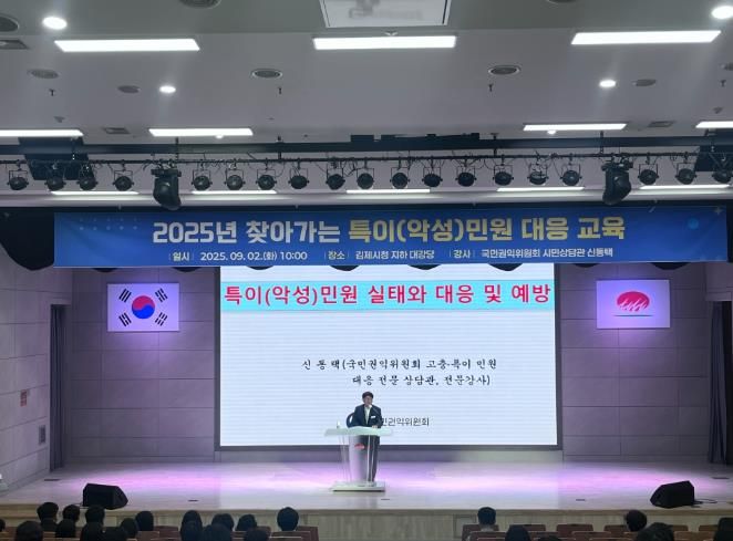 내고향뉴스 고광만 기자 | 김제시는 지난 2일 시청 대강당에서 민원 빈발 부서 등 민원담당 공무원 300여명을 대상으로 “2025년 김제시 특이(악성)민원 대응 교육”을 실시했다고 밝혔다.