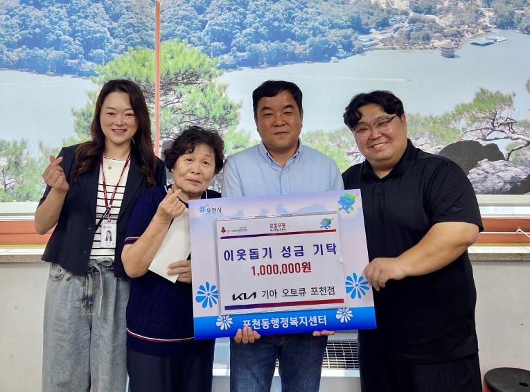 내고향뉴스 관리자 기자 | 포천시는 지난 2일 기아 오토큐 포천점이 포천동 지역사회보장협의체에 이웃돕기 성금 100만 원을 기탁했다고 밝혔다.