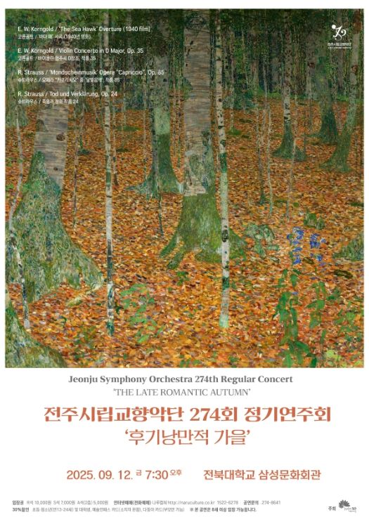 내고향뉴스 고광만 기자 | 전주시립교향악단(예술감독 겸 지휘자 성기선)은 오는 12일 오후 7시 30분, 전북대 삼성문화회관에서 ‘제274회 정기연주회-후기낭만적 가을’을 개최한다.