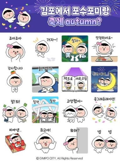 이번에 제작된 이모티콘은 ‘감사합니다’, ‘미아냉’, ‘칼퇴’ 등 일상에서 자주 쓰이는 표현 16종으로 구성됐으며, 대한민국 독서대전 인(in) 김포, 라베니체 축제, 애기봉평화생태공원 등 김포의 대표 가을 축제와 명소도 자연스럽게 반영해 지역 홍보 효과도 기대된다.