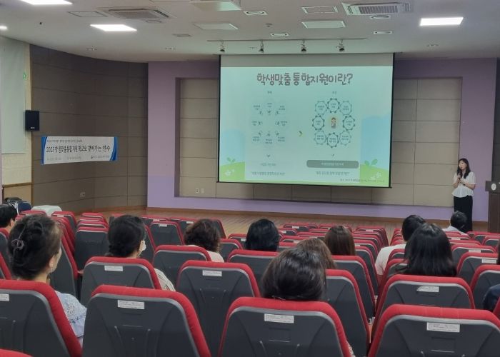 학생맞춤통합지원 학교로 찾아가는 연수 진행은 2025년 1월'학생맞춤통합지원법'제정, 2026년 3월 모든 학교 전면 시행에 앞서 교직원이 함께 협력하는 문화 조성을 통한 학생맞춤통합지원 체계 구축과 학생맞춤통합지원 체계 일반화 대비 학교 현장 교직원 역량 강화 일환으로 관내 신청학교 대상으로 진행된다.