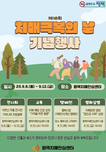 평택보건소 관계자는 “이번 치매 극복 주간행사를 통해 지역 주민들이 치매에 대해 올바르게 이해하고, 조기 검진과 예방의 중요성을 다시 한번 인식할 수 있길 기대한다. 앞으로도 치매 극복을 위해 지속적으로 노력하겠다”라고 말했다.