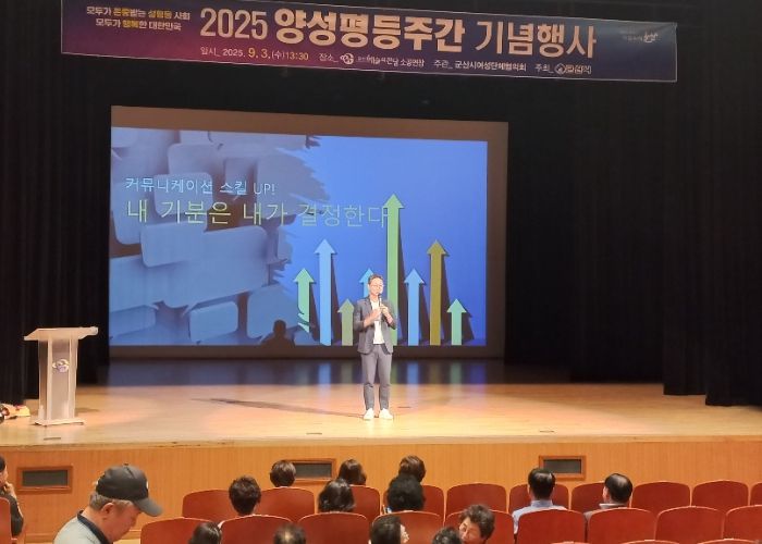 내고향뉴스 고광만 기자 | 군산시는 9월 1일부터 7일까지 이어지는 ‘양성평등주간’을 맞아 3일 군산예술의전당 소공연장에서 '2025년 양성평등주간 기념행사'를 개최했다.