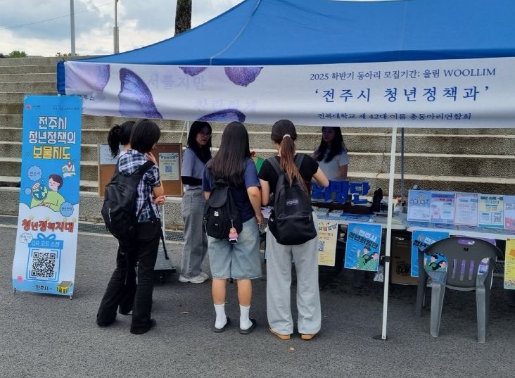 이번 부스 운영은 전북대학교 총동아리연합회 등 청년단체들과 협력해 추진된 것으로, 시는 대학 내 동아리 모집 기간을 활용해 이 학교 재학생들에게 전주시 청년정책을 집중 홍보했다.