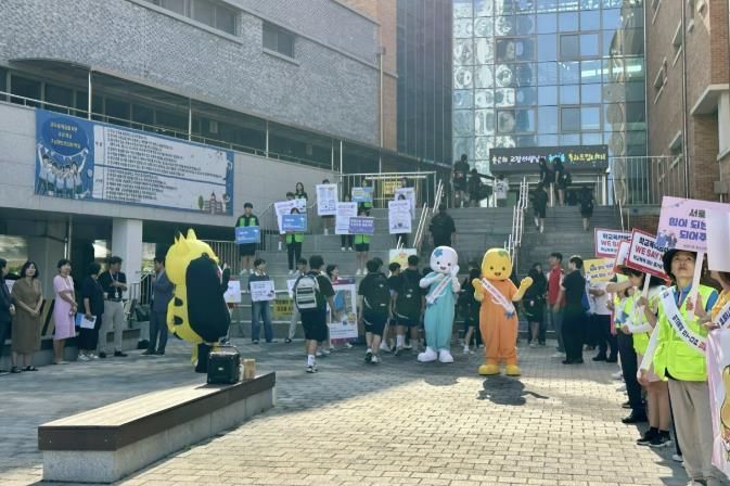 참여자들은 캠페인 문구가 들어간 팻말과 현수막을 들고 구호를 외치며, 등굣길 학생들을 대상으로 학교폭력에 대한 경각심을 높이는 활동을 적극적으로 펼쳤다. 학생들은 함께 구호를 외치고, 캠페인 참여 인증사진을 촬영하며 행복하고 안전한 학교 만들기에 동참했다.