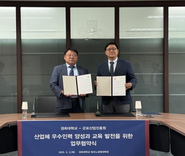 이번 협약을 통해 군포지역 중소기업들은 체계적인 전문인력 교육 기회를 확보하고, 경희대학교 테크노경영대학원은 현장 중심의 실무교육을 강화할 수 있을 것으로 전망된다.