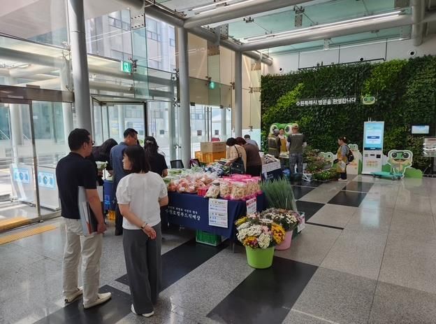 11월까지 ▲수원시청 별관 청사(매월 첫째 주 수요일) ▲장안구청 구민회관(매월 둘째 주 수요일) ▲한국마사회 수원지점(9월 25일 목요일)에서 오전 11시부터 오후 3시까지 직거래 장터가 열린다.
