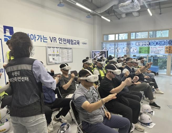 영통구 6개 건축공사장 관계자와 공무원 등 30여 명은 VR(가상현실) 콘텐츠를 활용해 추락, 충돌, 낙하물 등 실제 건설 현장에서 발생할 수 있는 사고 상황을 체험하고, 대응 방법을 배웠다. 가설공사 위험성 평가와 관리, 안전경영 관리 등 이론 교육도 함께 진행했다.
