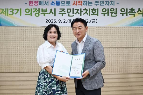 내고향뉴스 고광만 기자 | 의정부시는 9월 2일 의정부1동, 호원2동을 시작으로 12일까지 주민자치위원 455명을 대상으로 15개 동을 직접 찾아가며 현장 중심으로 소통하는 ‘제3기 주민자치회 위원 위촉식’을 진행한다.