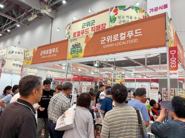 내고향뉴스 고광만 기자 | 군위군은 이달 3일부터 6일까지 엑스코에서 진행되는 '제25회 대구국제식품산업전'에 참가한다. 이번 행사에서 군위군은 ‘대구 시민의 식탁을 책임지겠다’는 의미로 '군위 로컬푸드' 홍보 부스를 운영하며 대구 시민들의 발길을 끌고 있다. 공무원과 농가 등 10여 명이 참여한 군위군 부스에서는 사과, 토마토, 포도 등 제철 신선 농산물은 물론, 대추칩, 자두빵, 오곡셰이크와 같이 군위의 특색을 담은 상품 50여 종을 홍보하고 판매한다.