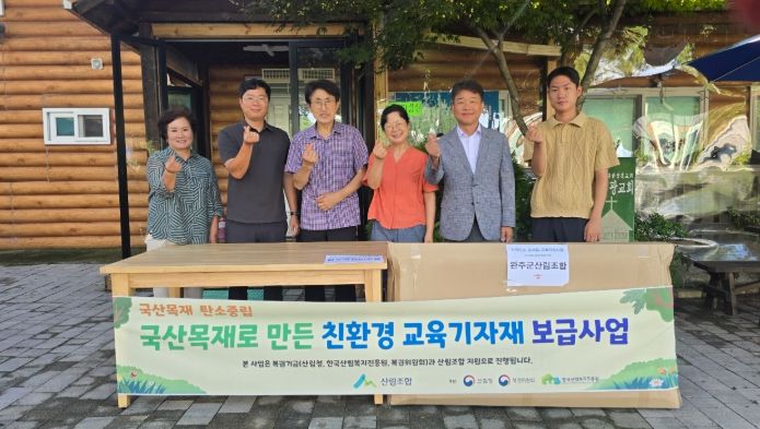 내고향뉴스 고광만 기자 | 완주군산림조합은 지난4일 산림청, 한국산림복지진흥원이 후원하고 산림조합중앙회에서 국산 목재를 활용하여 제작한 학습기자재(테이블, 좌탁)를 관내 다문화가정 및 다자녀가정에 나눔을 실시 했다