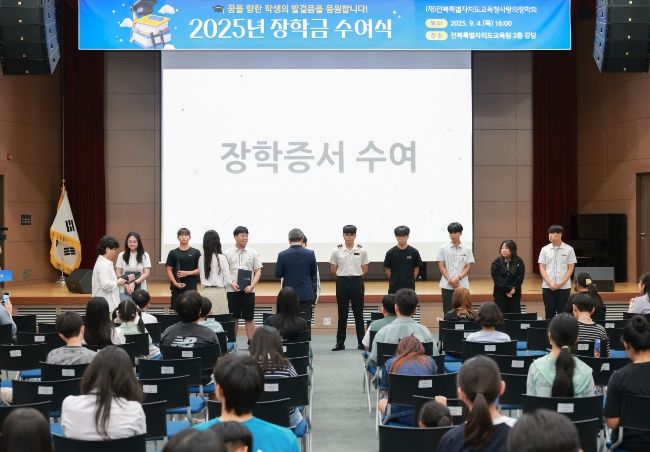 내고향뉴스 고광만 기자 | (재)전북특별자치도교육청사랑의장학회는 4일 전북특별자치도교육청 2층 강당에서 2025년 장학금 수여식을 개최했다.