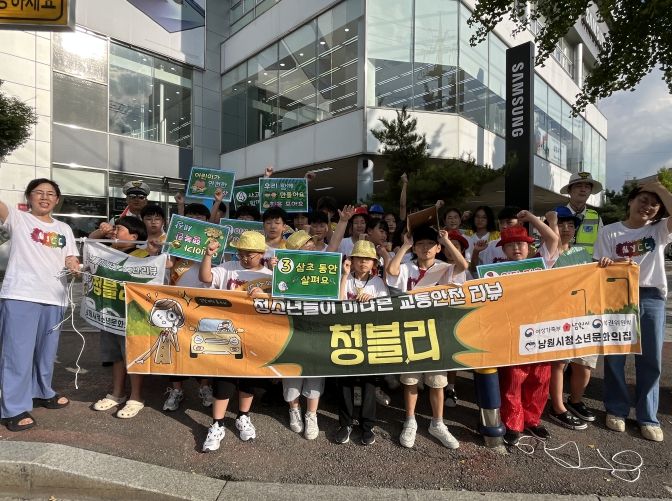 내고향뉴스 고광만 기자 | 사단법인 삼동청소년회가 운영하는 남원시청소년문화의집 방과후아카데미는 9월 4일 삼성전자 오거리 인근에서 ‘청블리 교통안전 캠페인’을 실시했다.