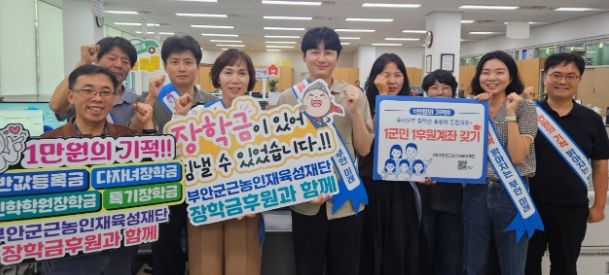 한편, 부안군근농인재육성재단은 대학등록금 본인부담금의 반값을 지원하는 반값등록금과 대학에 진학하지 않는 학생들에게 취업‧창업 학원비 지원을 하는 등 다양한 장학사업을 추진하고 있으며, ‘장학금 1군민 1후원계좌 갖기’ 운동을 통해 군민 모두가 장학금 수혜자이자 후원자가 되는 나눔 문화를 확산해 나가고 있다.