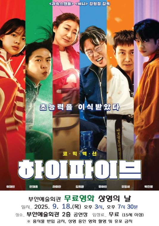 내고향뉴스 고광만 기자 | 부안예술회관은 9월 무료 영화 ‘하이파이브’을 오는 18일 오후 3시와 오후 7시 30분 총 2회에 걸쳐 부안예술회관 공연장에서 무료로 상영한다.