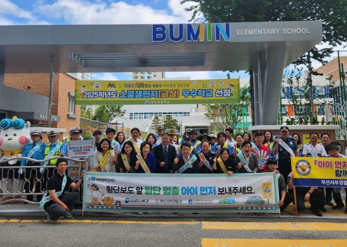 내고향뉴스 고광만 기자 | 부산광역시서부교육지원청은 4일 서구 부용동에 위치한 부민초등학교 주변 통학로에서 어린이 등굣길 교통사고 예방과 교통안전교육 일환으로 “아이 먼저 어린이 교통안전 합동 캠페인”을 실시했다.