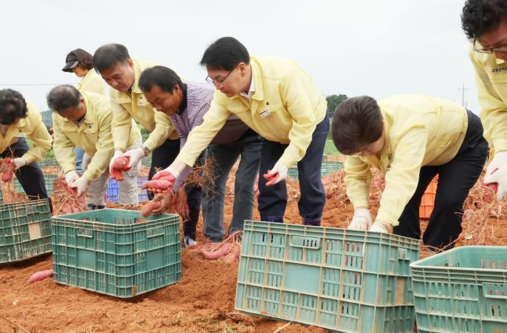 내고향뉴스 고광만 기자 | 심덕섭 고창군수는 8일 공음면 건동리 일원 1만6528㎡(약 5000평) 규모의 고구마 수확 현장을 방문해 생산 농가를 격려하고 애로사항을 청취했다.