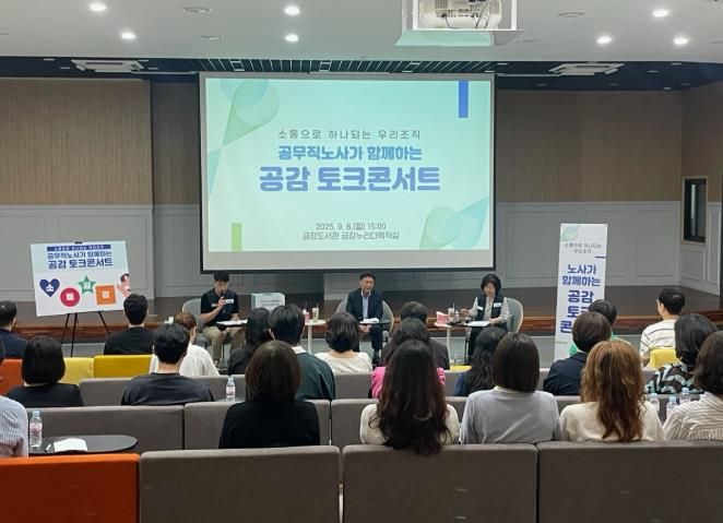 내고향뉴스 고광만 기자 | 군산시가 8일 금강도서관 금강누리다목적실에서 '공무직 노사가 함께하는 공감 토크콘서트'를 개최했다.