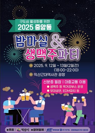 익산시는 오는 12일부터 13일까지 이틀간 중앙동 근대역사관 광장에서 '중앙동 밤마실&생맥주 파티'를 개최한다고 9일 밝혔다.