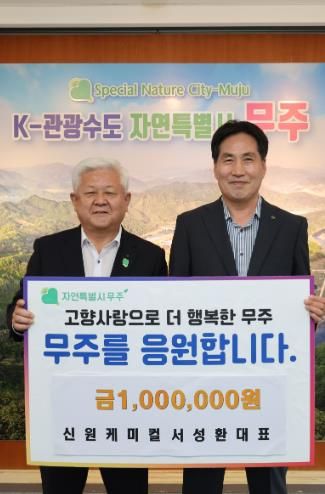 내고향뉴스 고광만 기자 | 신원케미칼 서성환 대표가 지난 9일 무주군에 고향사랑기부금 1백만 원을 기탁했다.