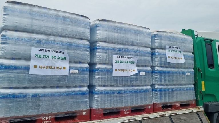 내고향뉴스 관리자 기자 | 대구 북구청은 9월 9일 심각한 가뭄으로 생활용수 부족과 제한급수에 직면한 자매도시 강릉시에 긴급 구호물품으로 2리터 생수 3,726병을 지원했다.