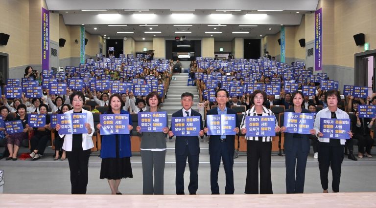 이번 행사는 여성단체 회원과 시민 등 300여 명이 참석해, ‘모두가 존중받는 성평등 사회, 모두가 행복한 김제’라는 슬로건 아래 서로를 존중하고 모두가 함께 행복한 사회를 실현할 것을 다짐하는 뜻깊은 시간을 가졌다.