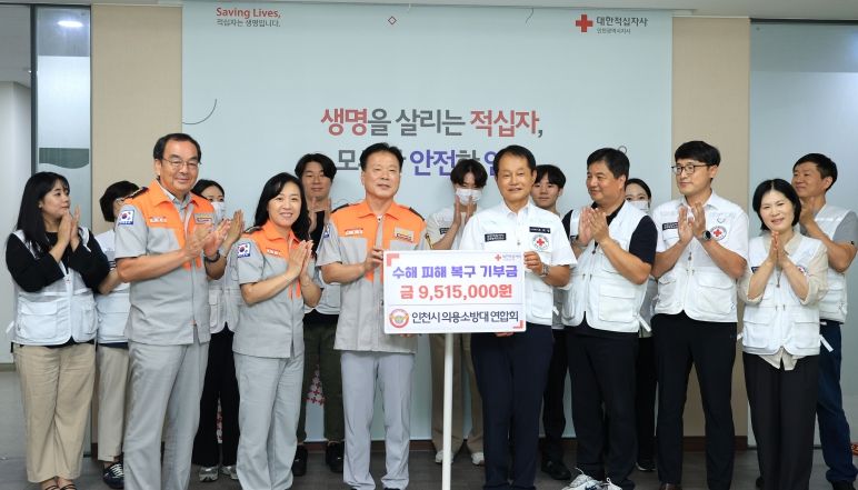 내고향뉴스 관리자 기자 | 대한적십자사 인천지사(회장 조의영)는 인천시의용소방대연합회 3,200여 명의 대원들이 인천 내 수해 피해 지원을 위한 성금 9,515,000원을 모아 전했다고 9일 밝혔다.