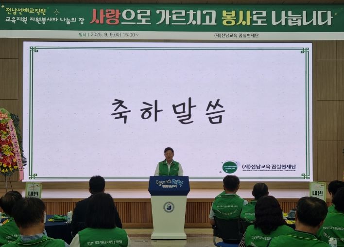 김정희 교육위원장은 축사에서 “교육은 한 세대가 다음 세대에게 전하는 가장 소중한 유산”이라며, “퇴임 교직원 여러분의 땀방울과 발자취가 있었기에 오늘의 전남교육이 가능했다”고 감사를 전했다. 이어 “이제 그 지혜와 경험이 봉사의 이름으로 다시 모여, 후배 교직원과 학생들에게 큰 힘과 등불이 될 것”이라고 강조했다.