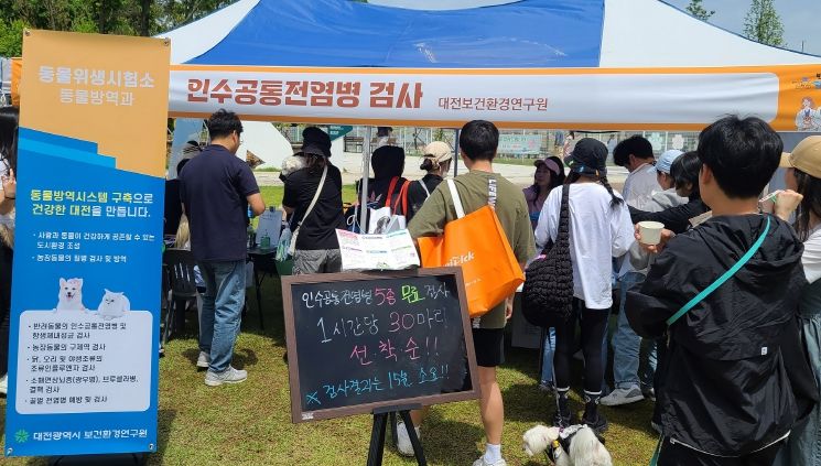 검사는 대전시수의사회 소속 동물병원과 공동으로 진행되며, 현장 혼잡과 안전사고 예방을 위해 시간당 30마리, 총 150마리까지 선착순으로 제한한다.
