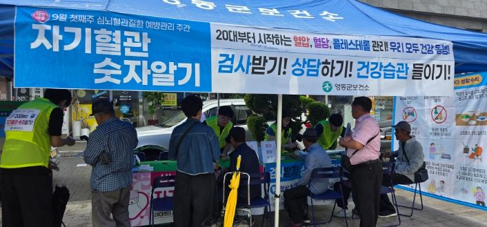내고향뉴스 관리자 기자 | 충북 영동군보건소는 심뇌혈관질환 예방 관리 주간(9월 첫째 주)을 맞아 지난 9일 영동읍 삼일공원에서 레드서클 캠페인을 성황리에 마쳤다.
