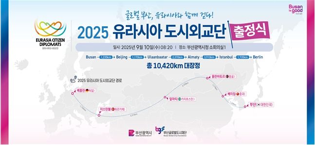 내고향뉴스 관리자 기자 | 부산시와 부산글로벌도시재단은 '2025 유라시아 도시외교단'이 글로벌 허브도시 부산 브랜드를 홍보하고 자매·우호도시와 교류 협력하기 위해 오늘(10일)부터 9월 25일까지 총 16일간의 여정을 떠난다고 밝혔다.