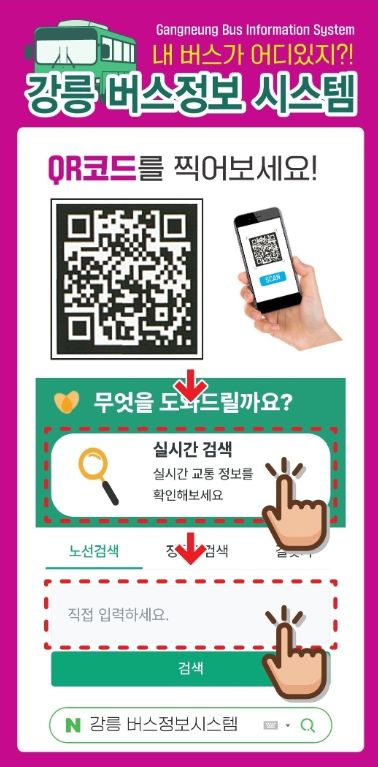 내고향뉴스 관리자 기자 | 강릉시가 관내 푯말형 버스 승강장에 버스정보시스템(BIS) 접속이 가능한 QR코드 안내 표지를 부착해 대중교통 이용 편의가 한층 개선될 전망이다.