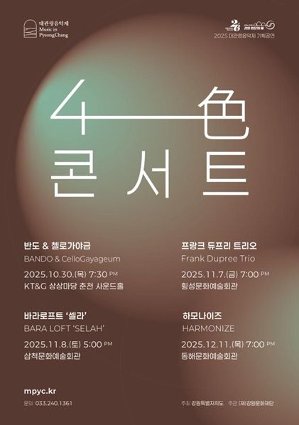 내고향뉴스 관리자 기자 | 강원문화재단은 2025 대관령음악제 기획공연 '4색(色) 콘서트' 공연을 오는 10월 30일부터 12월 11일까지 총 4회 개최한다고 밝혔다.