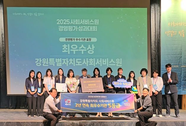 내고향뉴스 관리자 기자 | 강원특별자치도 사회서비스원은 9월 9일 보건복지부가 주최하고 중앙사회서비스원이 주관하는 ‘2025년 사회서비스원 경영평가 성과대회’에서 2년 연속 최우수 기관으로 선정되어 보건복지부 장관상을 수상했다.
