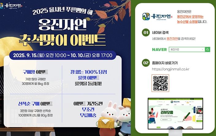 ‘옹진자연’에서는 오는 9월 15일부터 10월 10일까지 4주간 ‘추석맞이 이벤트’를 진행한다.